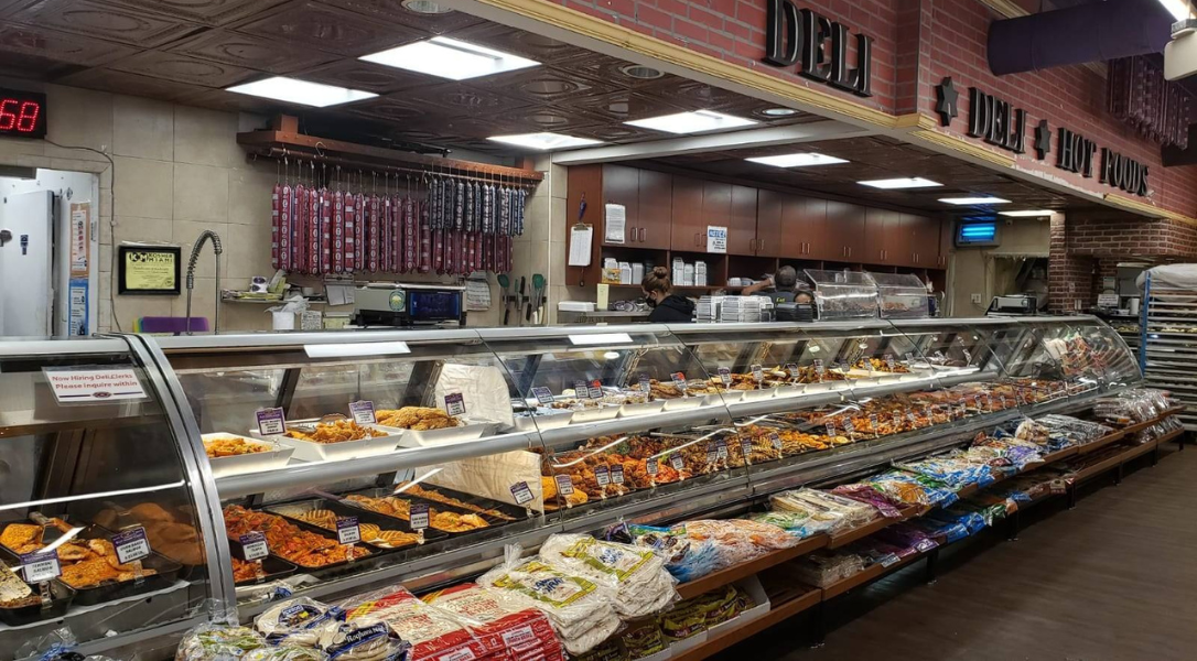 Their supermarket is huge at 11,000 sq ft. It’s filled with prepared food for takeout, fresh produce, a pizza and sushi counter, a huge wine selection, and much more!